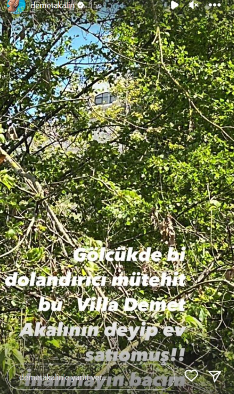 Hesabının hikayeler bölümünden yayınladığı bir yazıyla hayranlarını bir dolandırıcıya karşı uyaran Akalın, “Gölcük’te bir dolandırıcı müteahhit, ‘Bu villa Demet Akalın’ın’ deyip, ev satıyormuş! İnanmayın bacım” ifadelerini kullandı.