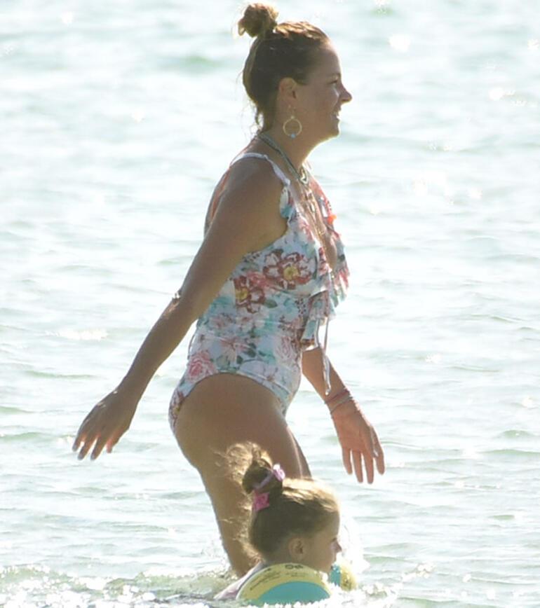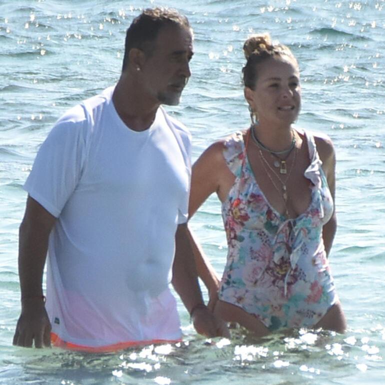 Üzerinde özel tişörtü ile denize giren Kamal, hassas vücudunu güneşten korurken, eşiyle bol bol sohbet etti. İlerleyen saatlerinde çocukları ile denizde zaman geçiren ikili, daha sonra localarına geçti.