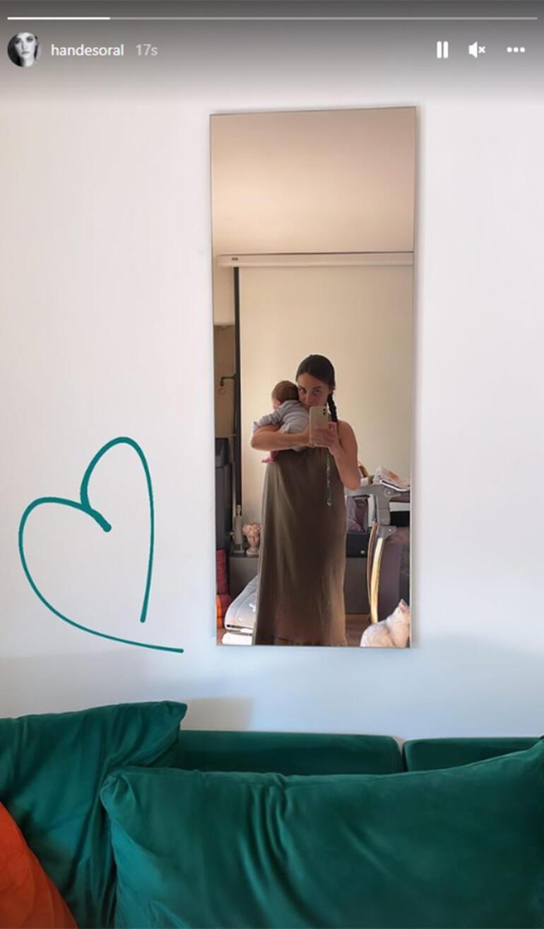 Şimdilerde evde oğlu ile ilgilenen çiçeği burnunda anne Hande Soral, son olarak oğlu kucağındayken aynadan bir fotoğraf çekti. Bu kareyi de kalp ile birlikte takipçileriyle paylaştı.