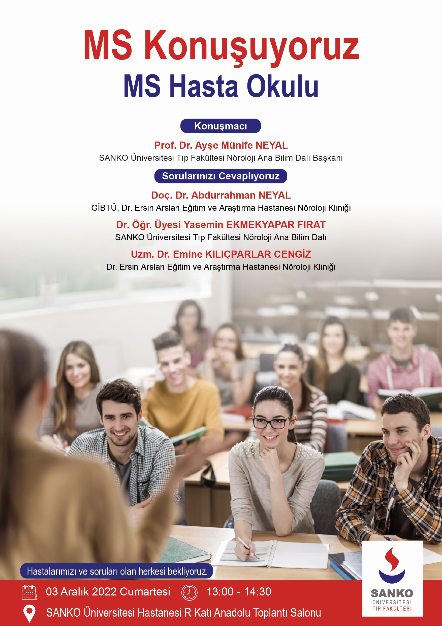 SANKO Üniversitesi Tıp Fakültesi Nöroloji Ana Bilim Dalı tarafından, merkezi sinir hastalığı olan Multipl Skleroz’un (MS) ele alındığı “MS Hasta Okulu” konulu toplantı düzenlendi. SANKO Üniversitesi H...