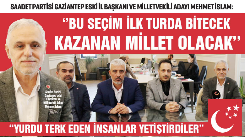 Saadet Partisi Gaziantep eski İl Başkanı ve Milletvekili Adayı Mehmet İslam: ‘’BU SEÇİM İLK TURDA BİTECEK KAZANAN MİLLET OLACAK’’