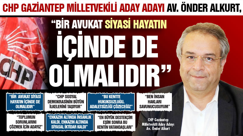 Gaziantep’te başarılı bir avukat olarak adından sıkça söz ettiren Av. Önder Alkurt, CHP’den Gaziantep Milletvekili aday adayı oldu. Ay Medya Grup’u ziyaret ederek gündemdeki konular ve projeleri hakkı...