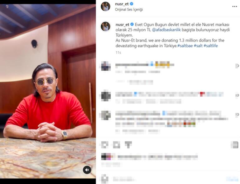 Buradan bütün dünayaya sesleniyorum. O gün, bugün. Acımız büyük. Birlik ve beraberlik zamanı. Türkiye’miz için, Nusret markası olarak AFAD’a 25 milyon TL bağışta bulunuyoruz. Haydi Türkiye’m, el ele, gönül gönüle biz beraberiz. Biz Türkiye’yiz.