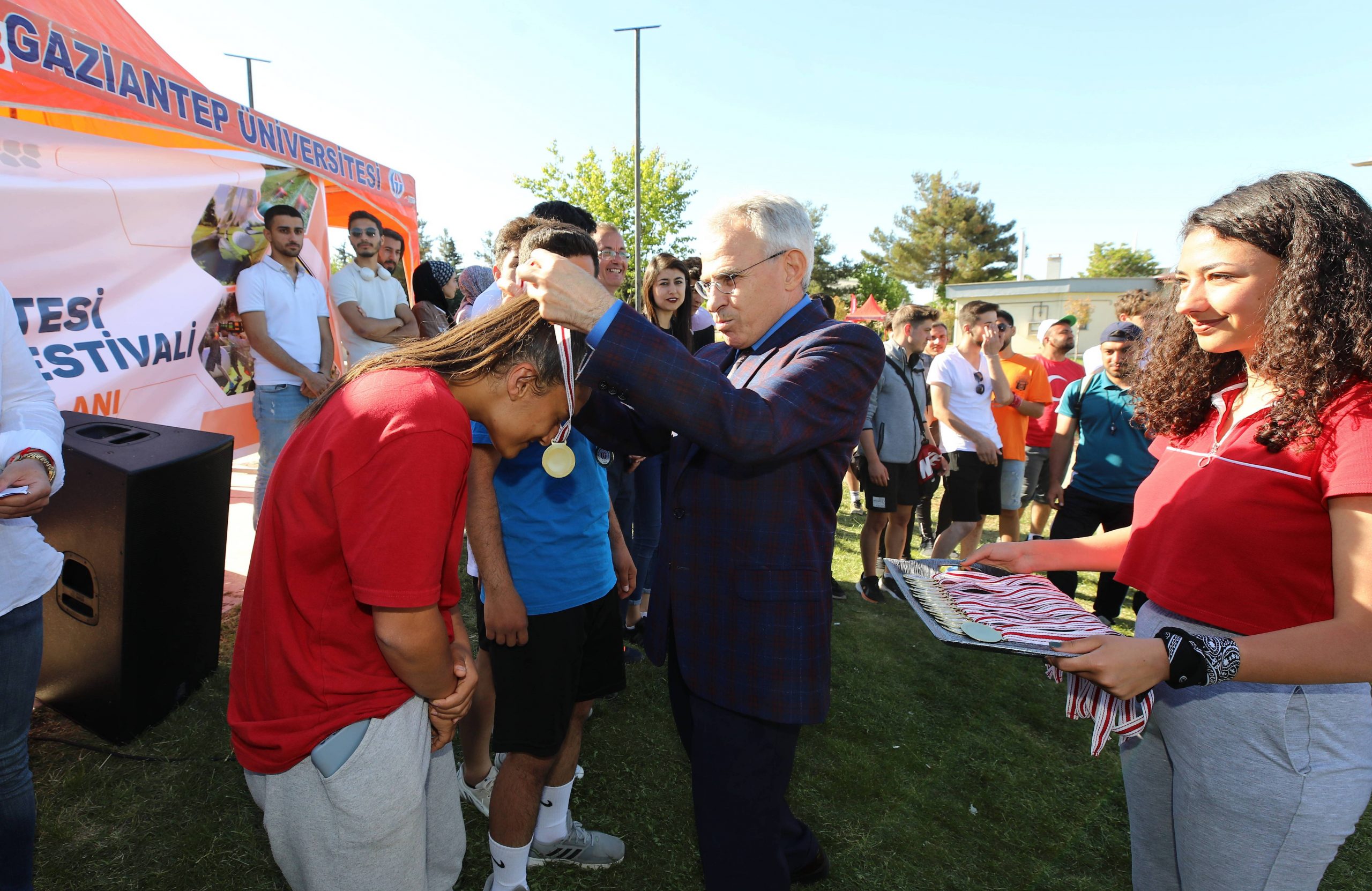 Spor müsabakalarının gerçekleştirildiği alanda öğrencilerle bir araya gelen Rektör Prof. Dr. Arif Özaydın, Gaziantep Üniversitesinde gerçekleştirilen Uluslararası Gençlik Festivaliyle birlikte, ülkemiz öğrencileriyle uluslararası öğrencilerin kaynaşma fırsatı bulduğunu ifade etti. Rektör Prof. Dr. Arif Özaydın, bu tür etkinliklerle kardeşlik ortamı oluşturmak istediklerini belirterek, sportif faaliyetleri başta olmak üzere kültür ve sanat etkinliklerinin devamının geleceğini söyledi. Etkinlikleri çerçevesinde ayak tenisi, çamur voleybolu, golf, dart, penaltı atışı, halat çekme, kaygan zemin, bocce, su savaşları ve bilek güreşinde başarılı elde eden sporculara Rektör Prof. Dr. Arif Özaydın, Genel Sekreter Dr. Muhammet Musa Budak, Spor Bilimleri Fakültesi Dekanı Prof. Dr. Yavuz Saka ve Genel Sekreter Yardımcısı Fatih Evyapan madalyalarını takdim etti.