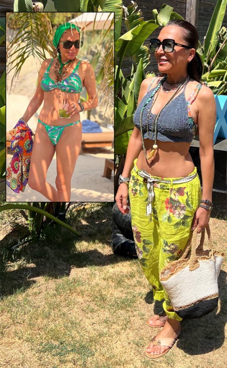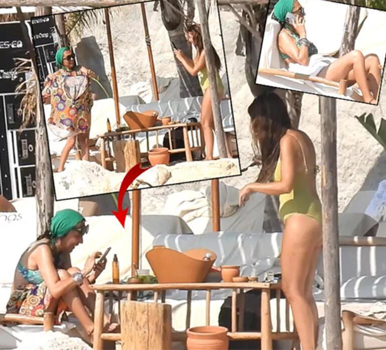 Birkaç dakika boyunca modellik yapan Dabak, çekilen fotoğraflarını incelerken gülmeye başlamıştı. Yıllara meydan okuyan formda görüntüsüyle dikkatleri üzerine çekmeyi başaran ünlü ismin renkli bikinisi ve yeşil bandanası dikkat çekmişti. Uzun bir süre denize girmeden oturan Dabak ve arkadaşı, daha sonra yanlarına gelen başka bir arkadaşlarıyla sohbete devam etmişti.