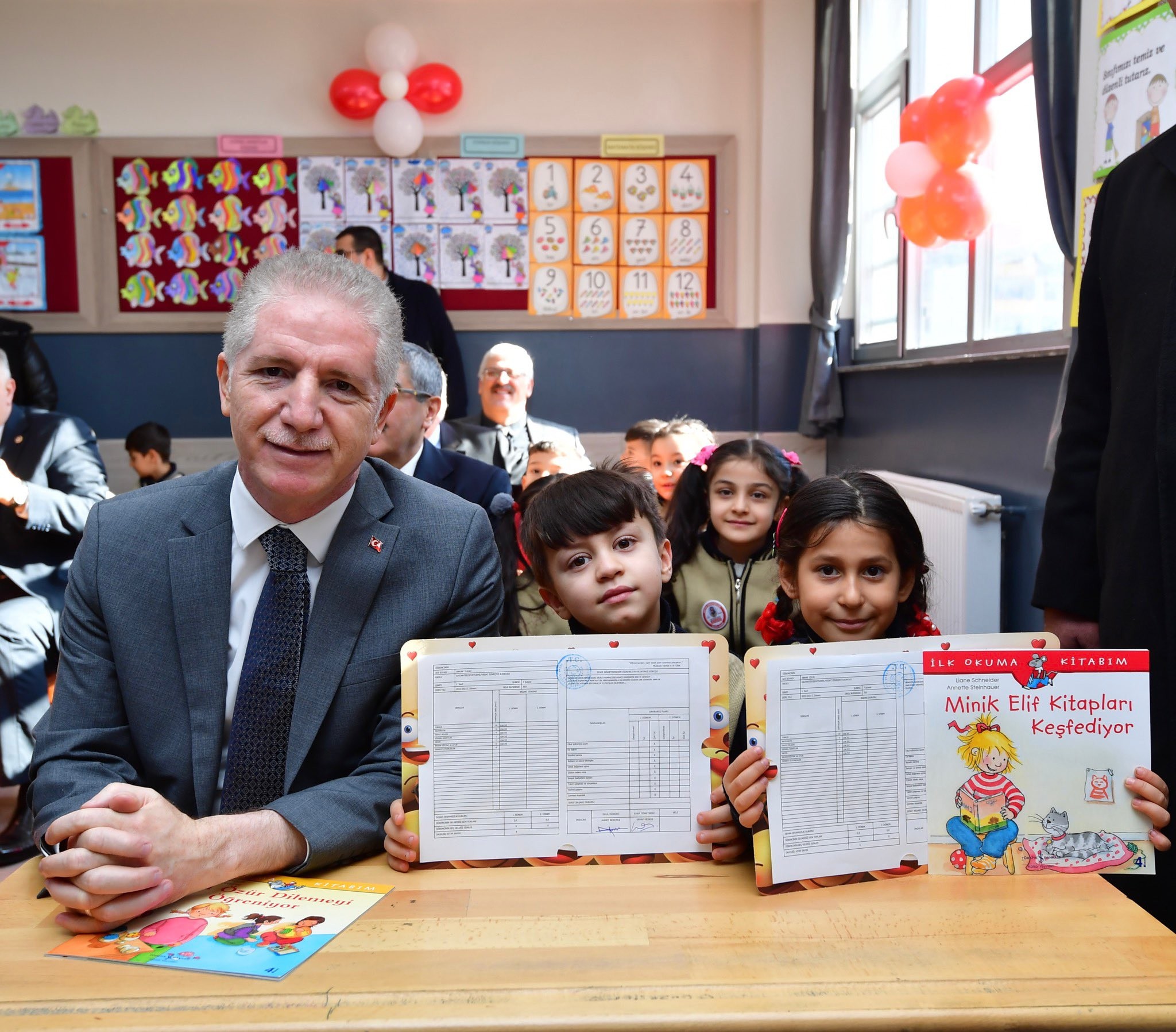 ailesi okulu gezdi. Okul açılışının karneler gününe denk gelmesi nedeniyle öğrencilere